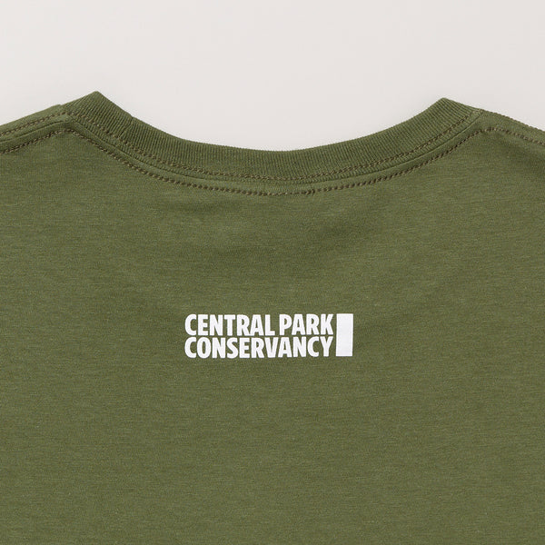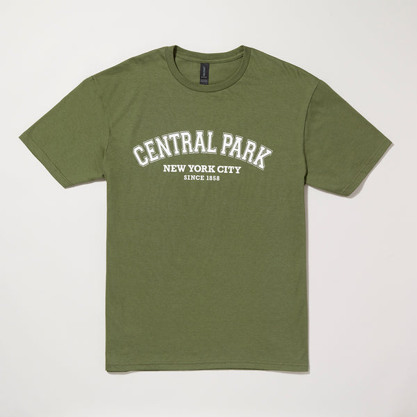Enjoy this soft combed 100% ring-spun cotton T-shirt as you stroll through the Park that inspired it. Featuring our classic collegiate style design in white ink, the soft olive green color is a great neutral for every season. The text reads "Central Park, New York City, Since 1858."